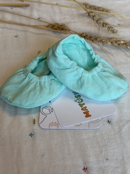 Пинетки связаны в рубчик из нежной хлопковой пряжи.