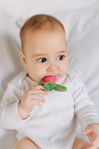 Прорезыватель для зубов FOX TEETHER от ROXY-KIDS подходит для всех стадий прорезывания зубов у малышей. Он состоит из элементов различной степени жесткости, что позволяет малышу использовать на протяжении всего времени прорезывания. На начальном этапе, когда у малыша раздражены десны, он может чесать их о мягкую рельефную голову лисенка. На завершающем этапе малыш сможет грызть более твердое тело и твердый хвост для лучшего эффекта. Прорезыватель сделан из безопасных гипоаллергенных материалов (термоэластопласта и полипропилена), так что ребенок может грызть его целыми днями. Еще одна отличительная особенность FOX TEETHER это тело, сделанное в форме кольца, которое малыш сможет удобно держать. В ассортименте ROXY-KIDS прорезыватели FOX TEETHER представлены в нескольких цветах. Соответствует стандартам безопасности товаров для детей.